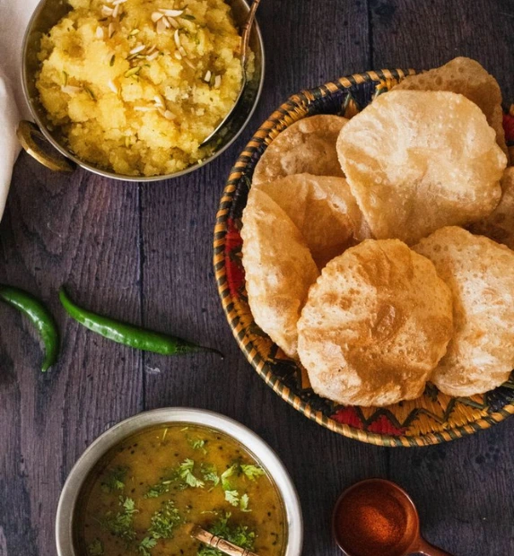 We Serve halwa puri breakfast with ready made puri. Only Saturdays and Sundays